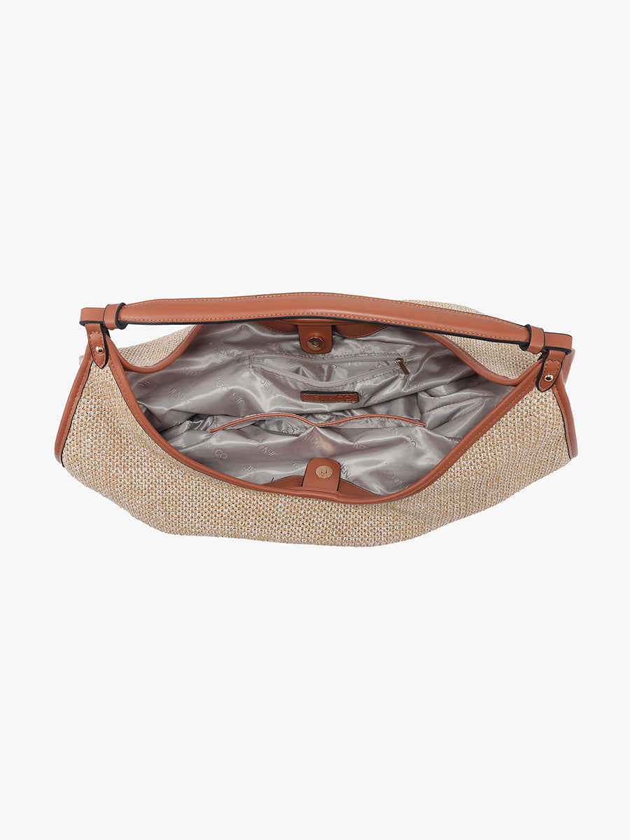 Meet the Cecilia Slouchy Soft Straw Woven Hobo with Snap Closure. This roomy. slouchy hobo bag is crafted from soft straw in a woven design. offering a relaxed and stylish look. Featuring a convenient snap closure. it’s perfect for carrying everyday essentials with effortless ease.
