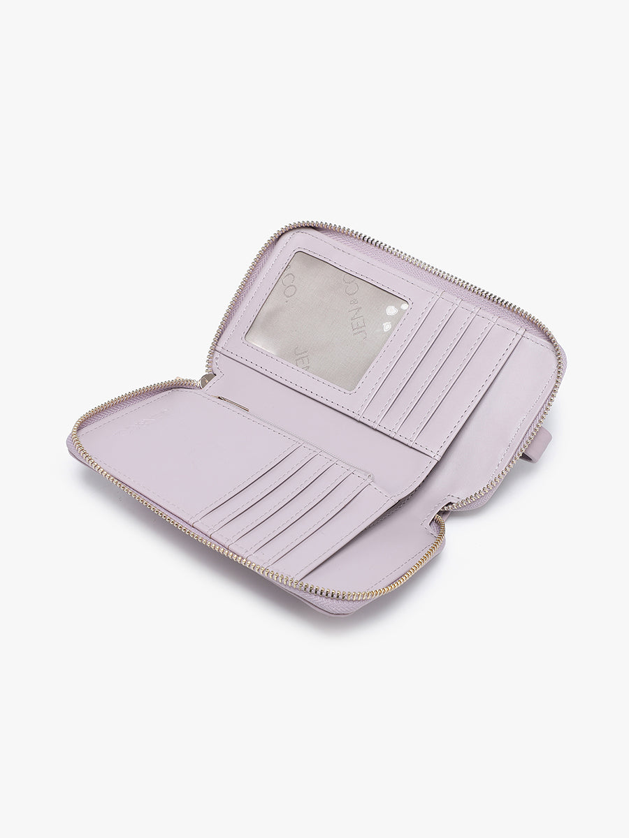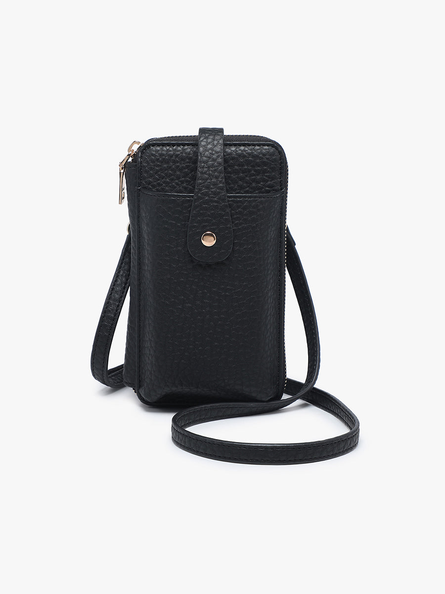Crafted from our high-quality vegan leather. the Isla Crossbody blends functionality with a streamlined silhouette. Featuring a convenient front pocket with snap closure. the interior is organized with eight card slots. an ID window. a full length bill compartment. and a secure zip compartment. It's finished with an adjustable. removable crossbody strap for versatile wear.