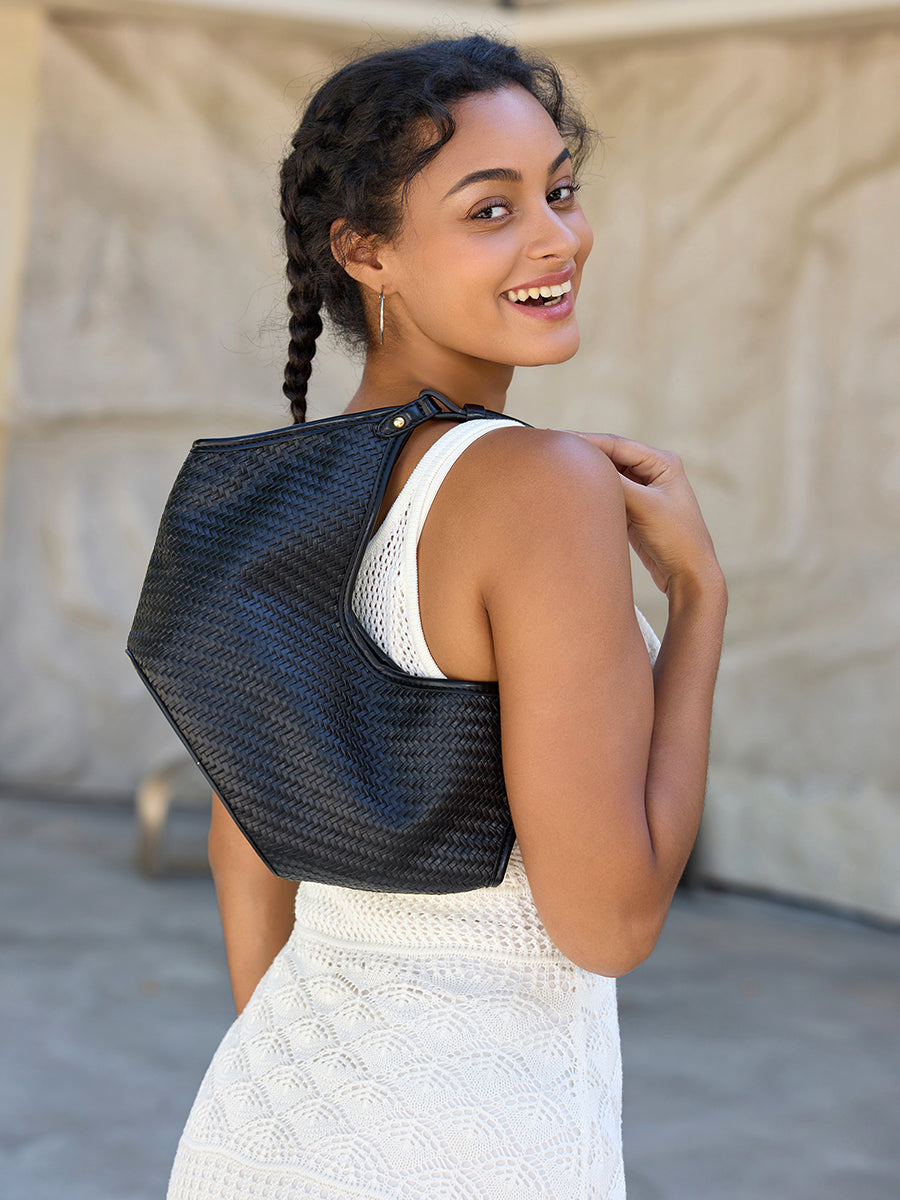 The Jade Woven Hobo Bag blends modern sophistication with everyday function. Its faux woven texture adds style. while the snap closure and roomy hobo silhouette keep essentials secure and accessible.