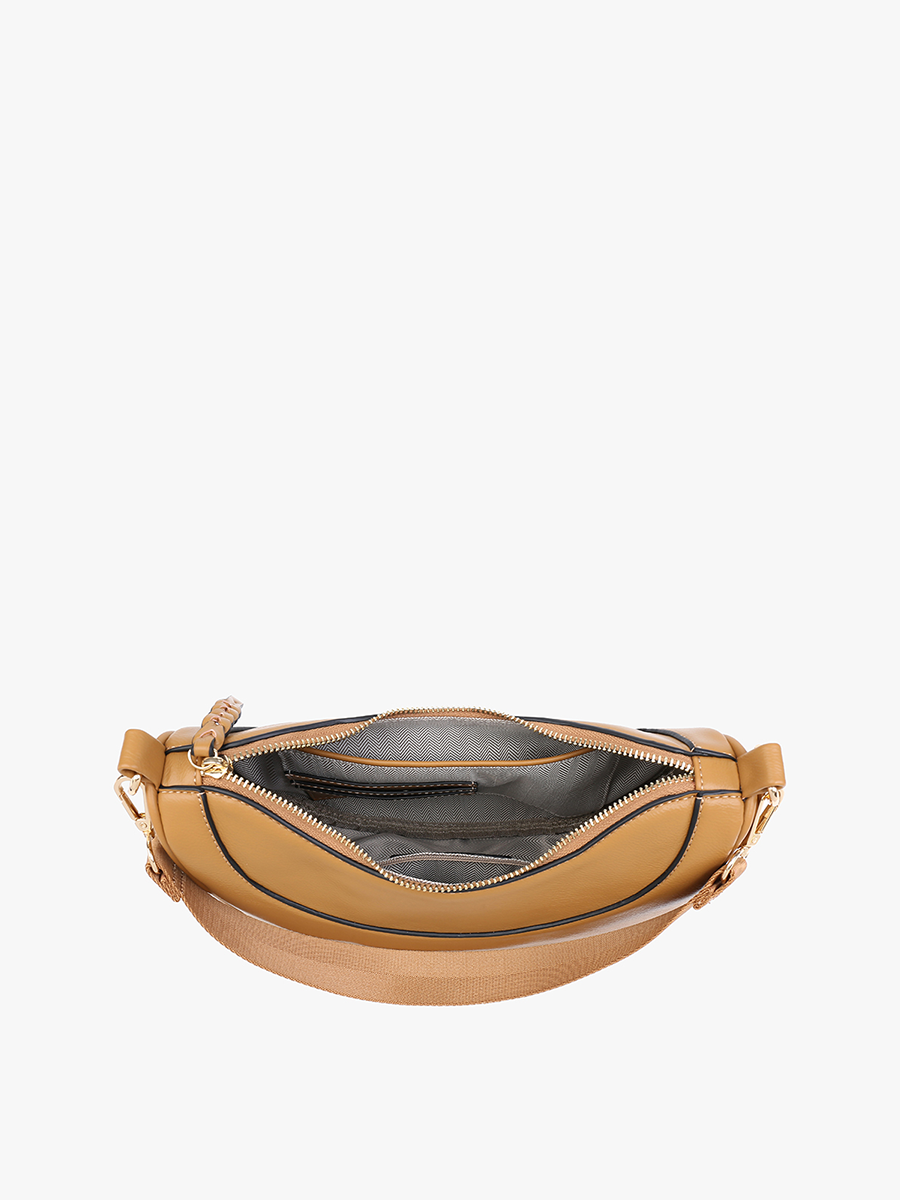 Introducing Monica. the quirky and fun half-moon crossbody bag designed to add charm to your ensemble. Featuring a convenient top zip closure. Monica ensures easy access to your essentials while keeping them secure on the go. With a removable nylon shoulder strap and adjustable crossbody strap. you have the flexibility to customize your carry according to your preferences and style.