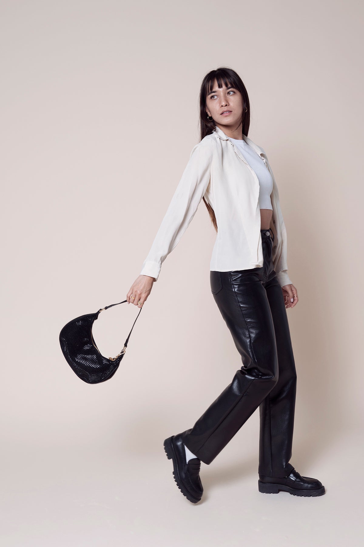 - Vegan leather trim adds a touch of sophistication.